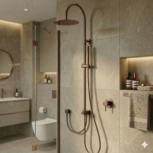 מוט פינוק יוקרתי למקלחת כולל נקודת מים | רוז גולד מוברש | מק"ט 2028RZ