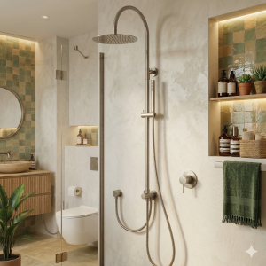 מוט פינוק יוקרתי למקלחת כולל נקודת מים | ניקל מוברש | מק"ט 2028BN