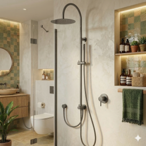מוט פינוק יוקרתי למקלחת כולל נקודת מים | אפור גרפיט | מק"ט 2028GR