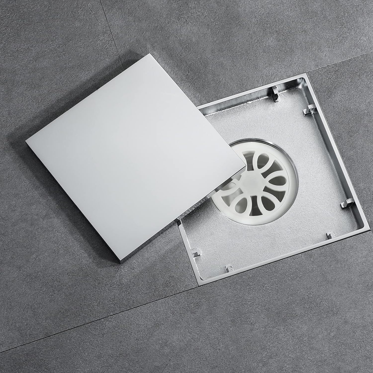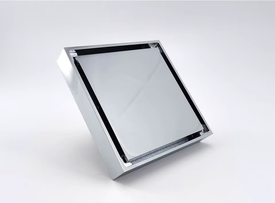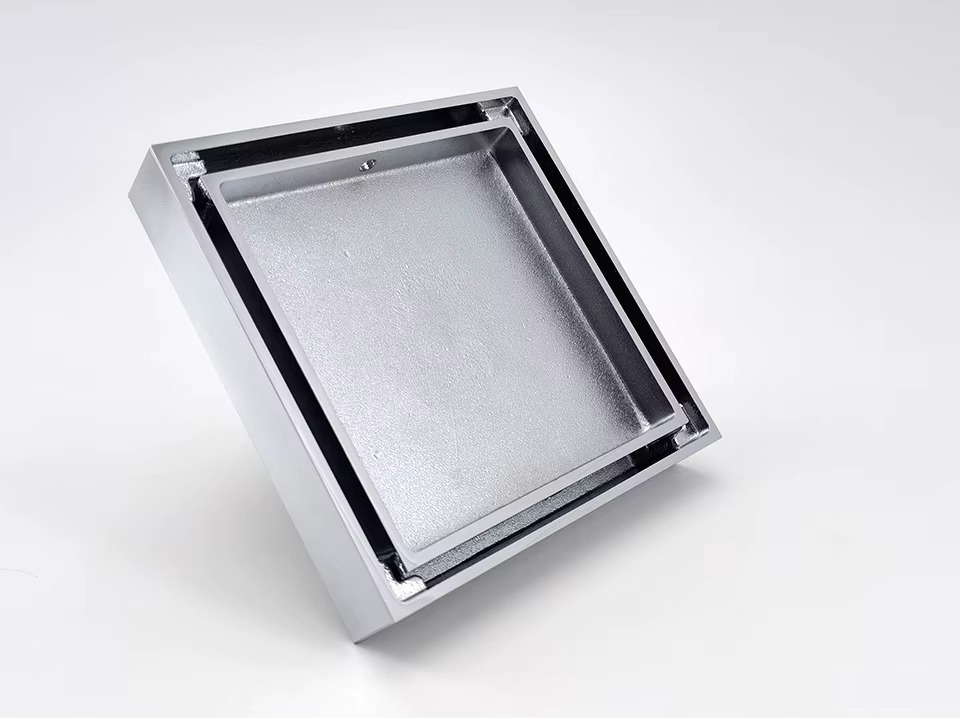תעלת ניקוז מרובעת ממתכת בראס איכותית וכבדה בגימור כרום